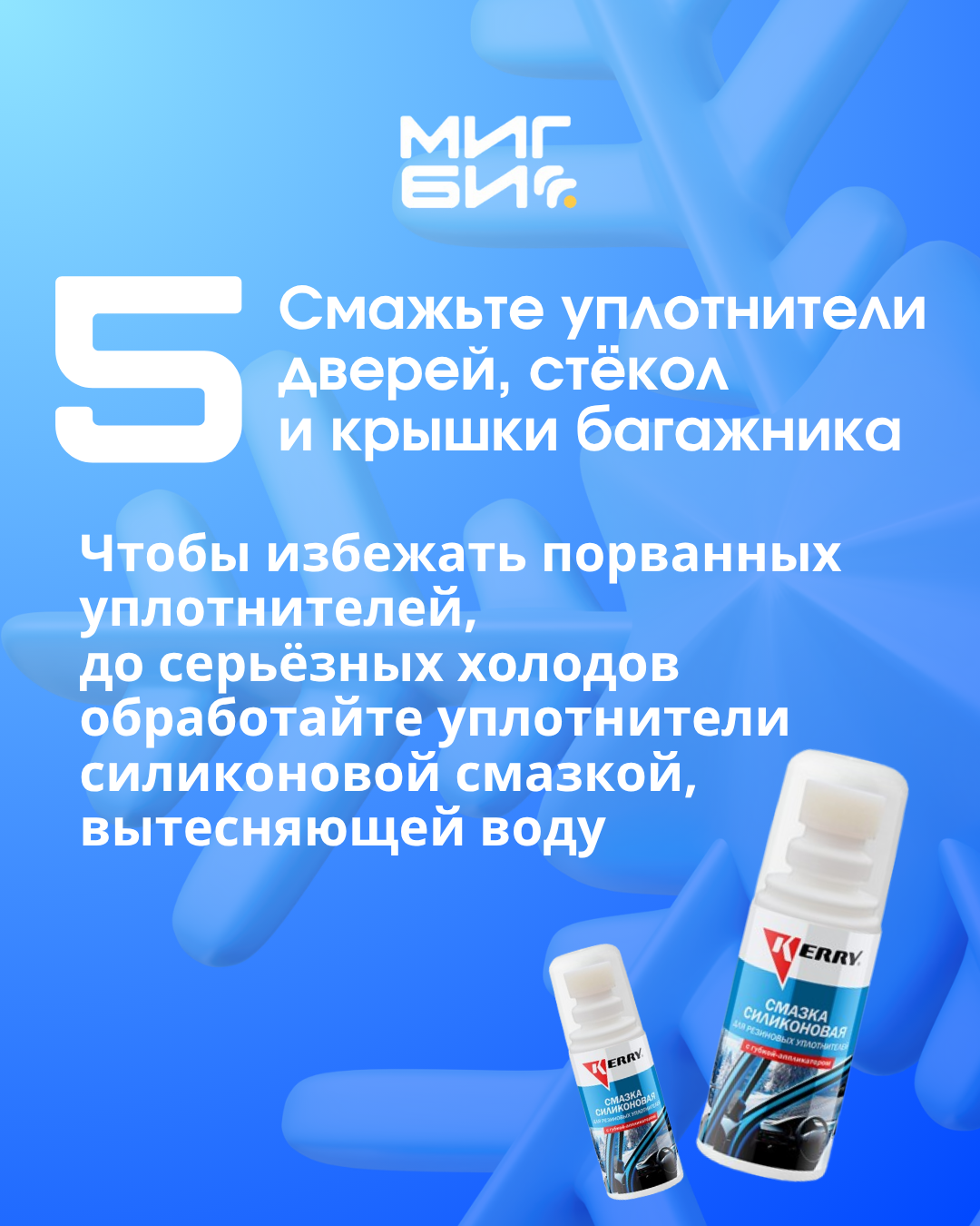Пятое – обработай уплотнители дверей и багажника силиконовой смазкой. Так они не примерзнут и не порвутся.